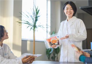 当社は、食生活の変化に合わせ、日々新商品を開発しています。自社商品開発、原料素材の生産についても研究を進めるなど、【未来食品創造企業】を目指してチャレンジしています!