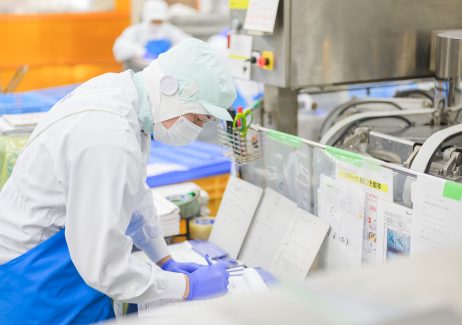 製造中は、検品、バランス、印字など決められた手順で行っているか確認し、効率よく稼働しているか部下の人と確認しながら行っています。