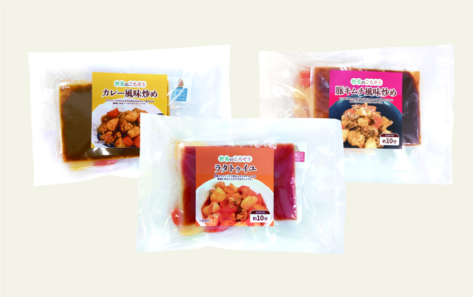 加熱済み野菜と特製タレが1セットになった便利なキットです。ご自宅に保存しているお好みのお肉(牛・豚・鶏など)とこのキットを合わせて調理するだけで、手間をかけずに本格的な料理が簡単に完成します。加熱に時間のかかる根菜も、下処理済みのため、調理時間を大幅に短縮できます。