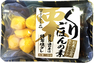 | 栗を贅沢にごろっと楽しめる栗ご飯の素です。栗本来の風味を最大限に引き立てる特製の塩ダレと、香ばしい醤油の風味が食欲をそそる特製の醤油ダレの2種類をご用意しました。 |